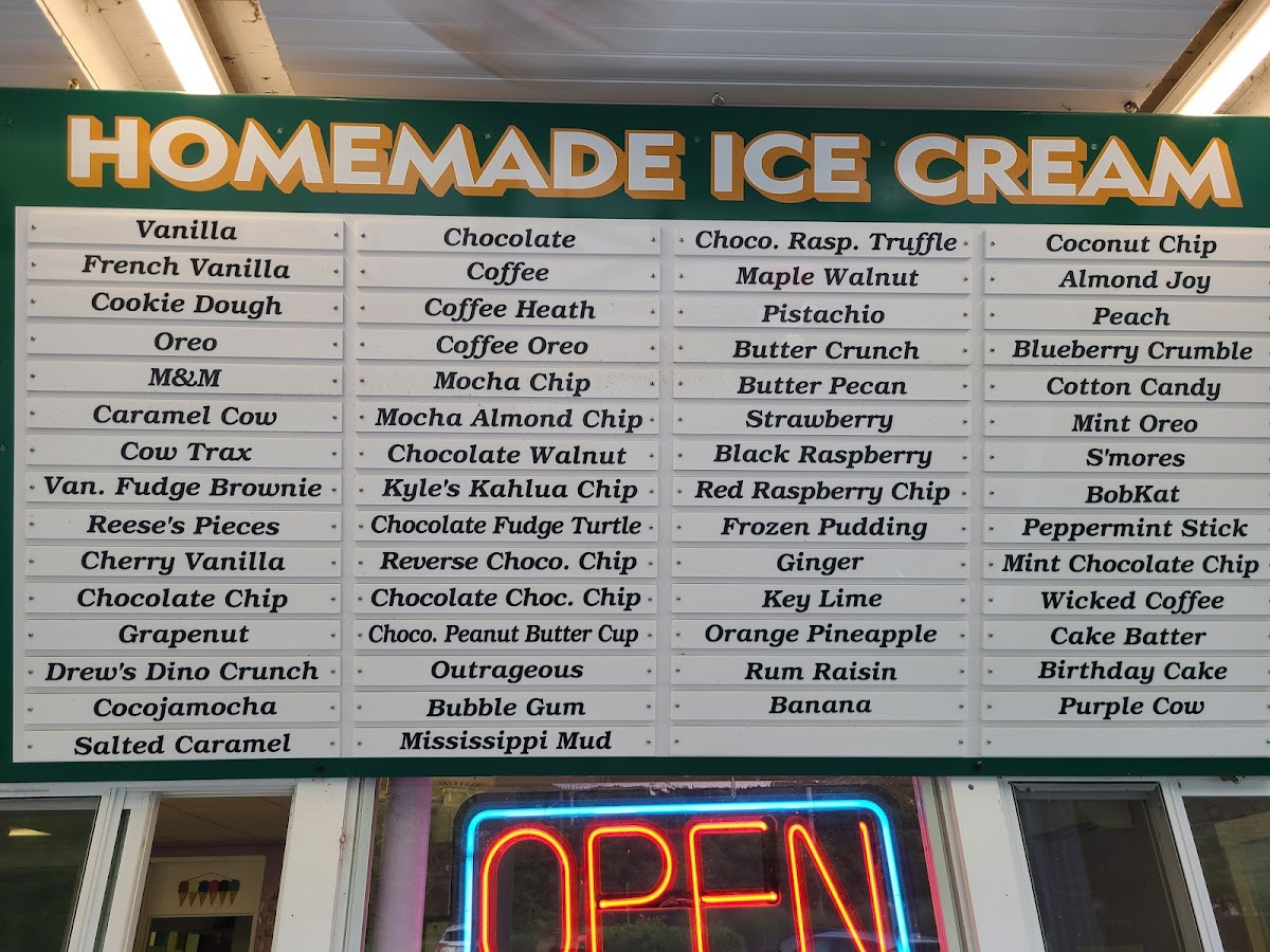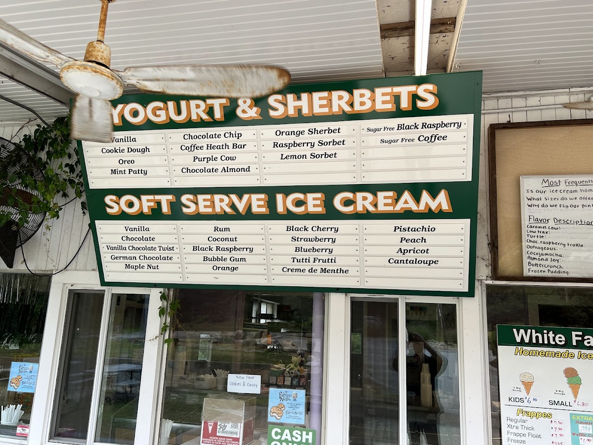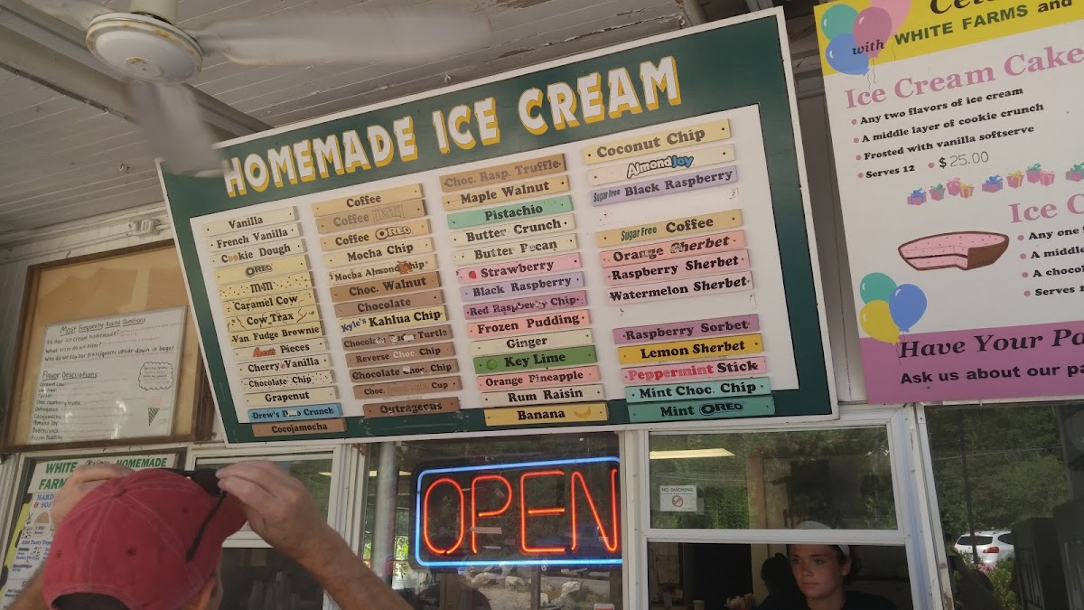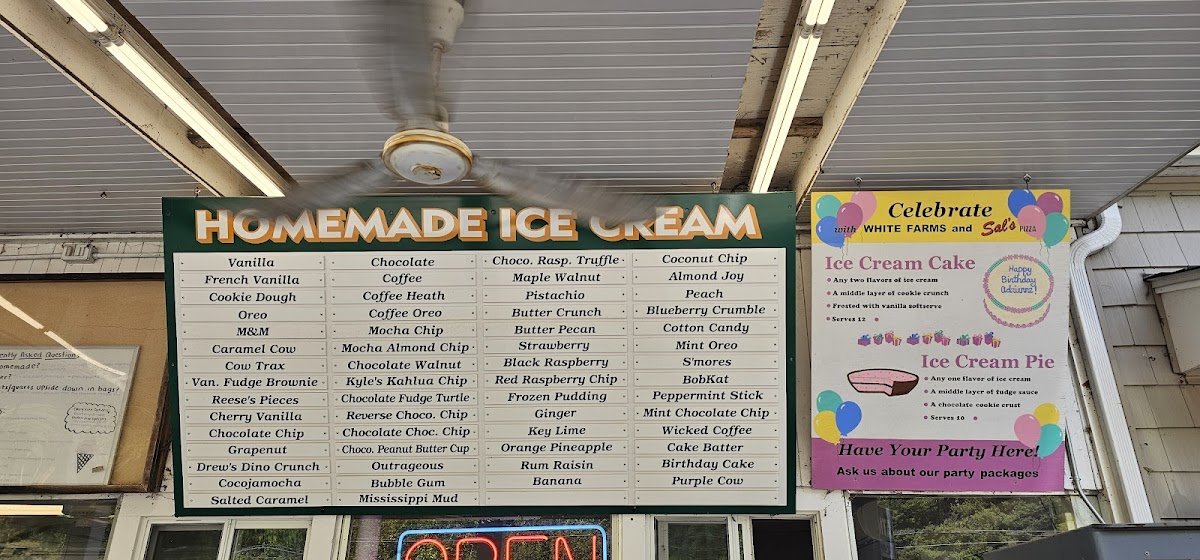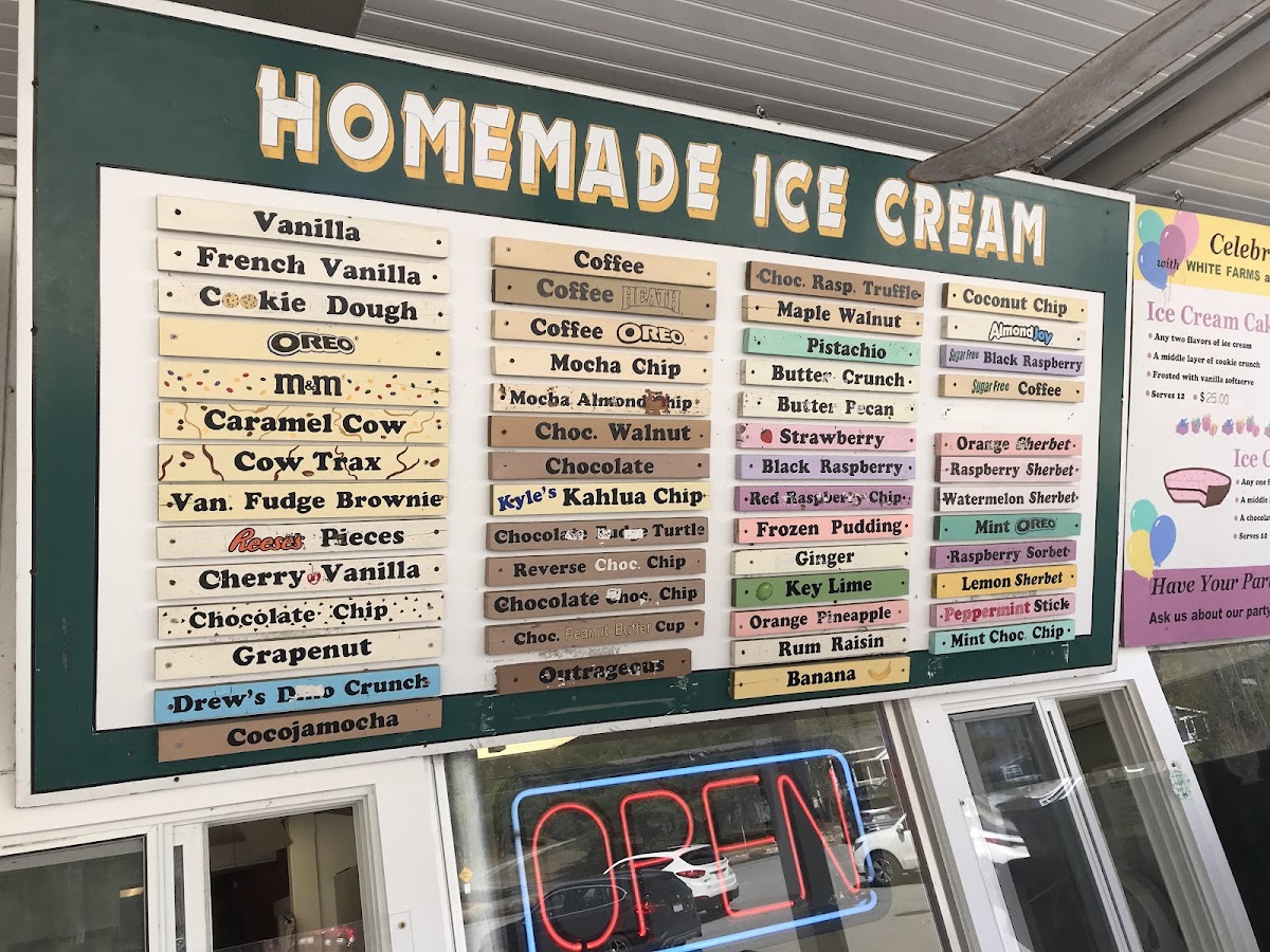 The menu at White Farms Ice Cream reflects a classic, straightforward ice cream shop experience, perfect for casual outings and easy-going afternoons. It offers a wide variety of homemade ice cream flavors, catering to both traditional tastes and those seeking a little variety, with options ranging from rich chocolate and creamy butter vanilla to unique choices like Thai Tea and Caramel Cow.